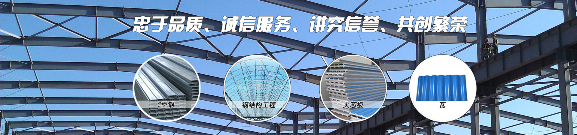 本公司主要經(jīng)營項目有:鋼結(jié)構(gòu)、大跨度空間管桁架、鋼結(jié)構(gòu)廠房、 汽車展廳、制作大跨度空間網(wǎng)架、管道的焊接安裝、加工各種金屬隔熱板、 幕墻工程、彩鋼板、彩鋼夾心板等。
